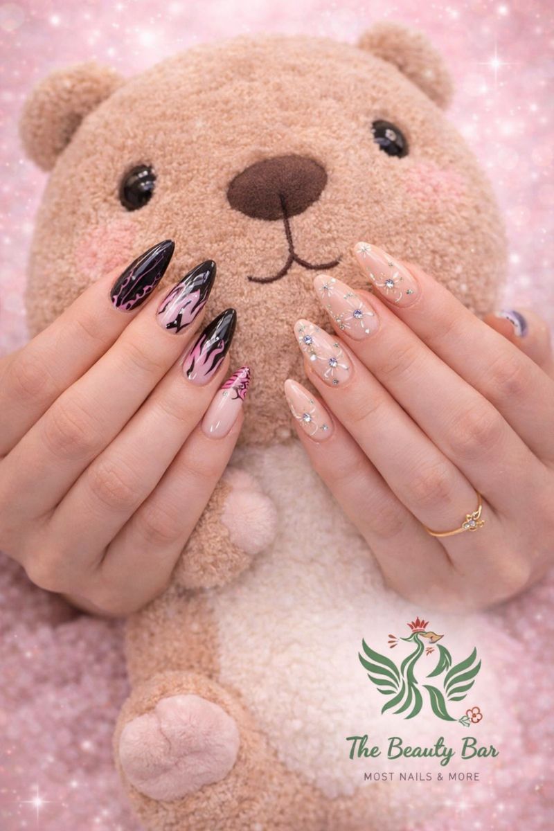 Im Jahr 2026 steht Nail Art nicht mehr nur für Schönheit, sondern für Selbstausdruck, Individualität und Stilbewusstsein. Das hier präsentierte Nageldesign verkörpert genau diesen Zeitgeist: eine mutige Kombination aus Schwarz, Rosa, Blau und Nude, kunstvoll umgesetzt auf eleganten, spitz zulaufenden Nägeln. Dieses Design ist kein Trend von gestern – es ist ein Statement für moderne Frauen, die sich trauen, anders zu sein.