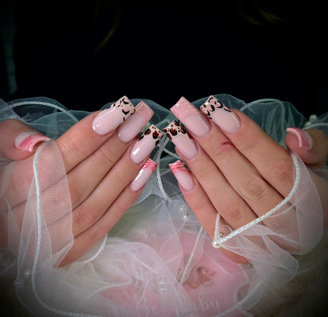 Das hier vorgestellte Design kombiniert klassische Nude-Basis, elegante Square-Form, verspielte Animal-Prints im French-Look und künstlerische rosa Wellenmuster. Diese Mischung schafft einen Look, der gleichzeitig edel, frech, jung und unglaublich vielseitig wirkt.