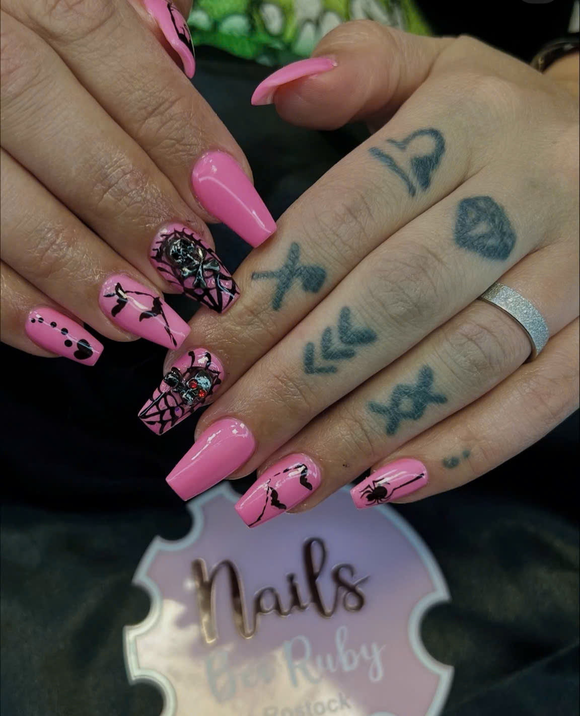 Die „Pink Spider Glam“-Kollektion wurde exklusiv von den Nagelkünstlerinnen bei Ruby Nails Rostock entworfen.
