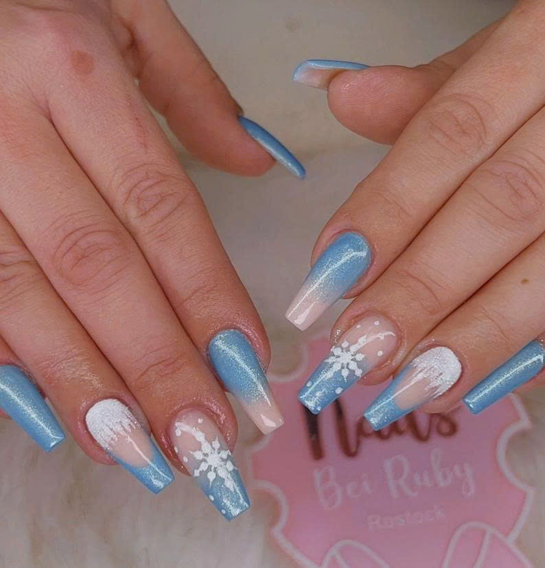 Winter-Zauber auf den Fingerspitzen – Das perfekte Weihnachts-Nageldesign in Blau & Weiß bei Ruby Nails Rostock